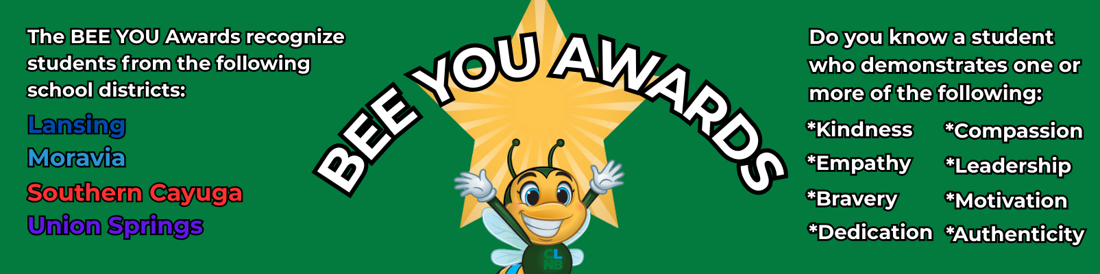 Cayuga Lake National Bank is NOW accepting nominations for its 4th Annual BEE YOU AWARDS.